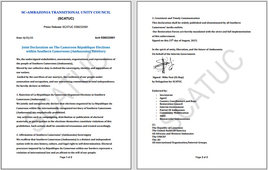 • Biya Delays Legislative and Municipal Elections Again, Extends Mandates of MPs and Councillors