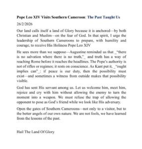 • OPINION: Pope Leo’s visit to Bamenda, LRC: Moral Test for Vatican Amid War on Ambazonia