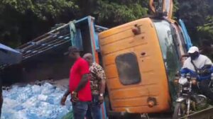 Activities along the Mile 14 – Dibanda stretch of the Buea–Mutengene highway have resumed normal flow barely a day after a truck loaded with pallets of bottled water and soft drinks suffered a brake failure and crashed at the Dibanda hill, spilling its entire load across the busy road.